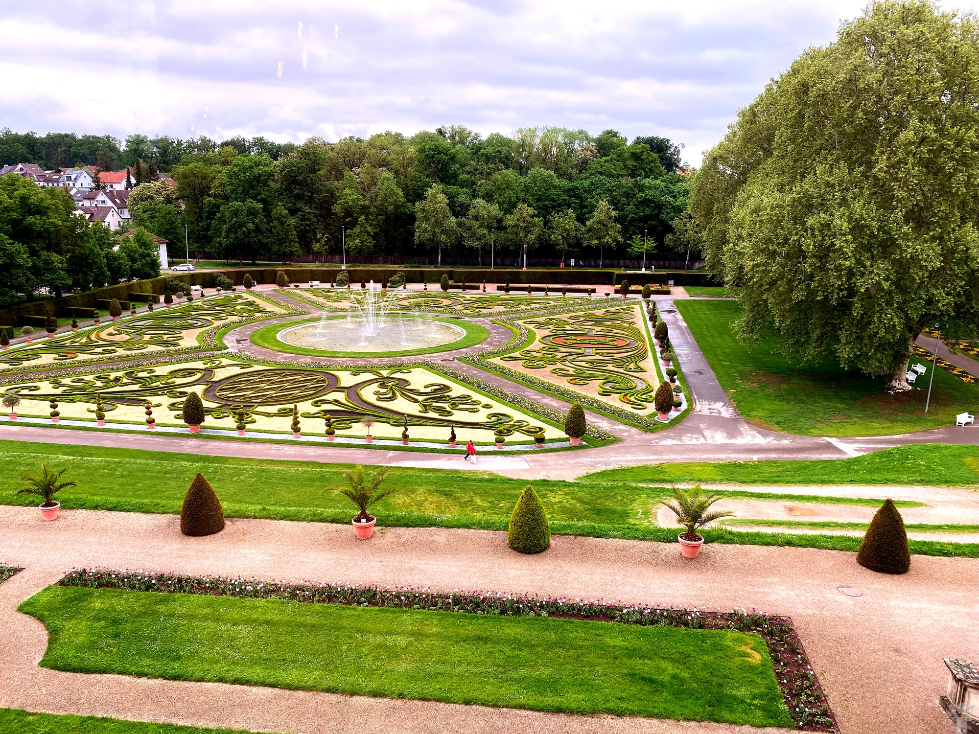 Особливе місце в Людвігсбурзі займають його сади. Передній, або Верхній сад (Obere Schlossgarten), з французькою геометрією клумб, і Задній сад (Unterer Garten), де нині тече фонтанна симфонія серед зелені. Тут гуляють павичі, квітнуть сезонні експозиції, а взимку перетворюється на казкове містечко світла. Ці сади не просто тло для палацу — це його жива частина.