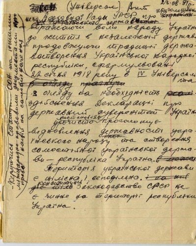 У президії Верховної Ради цей проєкт документу від Левка Григоровича відредагували так, щоб за нього проголосувала й більшість — комуністи, для яких Українська Народна Республіка та IV Універсал Української Центральної Ради були чимось невідомим або/і підозрілим, ворожим...